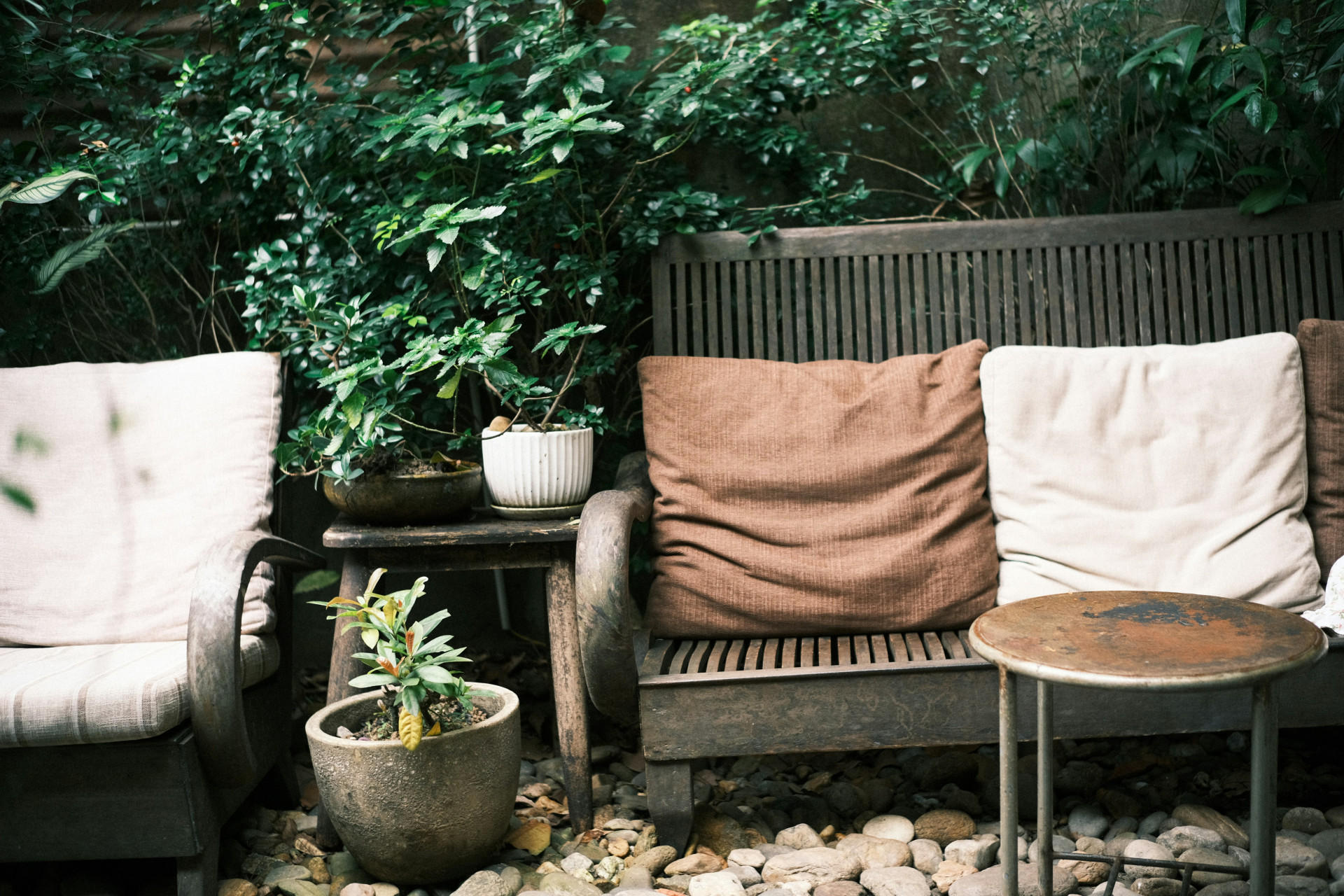Kleine Kissen und Zierkissen werden verwendet, um zusätzlichen Komfort und Stil zu schaffen. Sie können je nach Saison oder Stimmung leicht ausgetauscht werden und sind eine einfache Möglichkeit, das Erscheinungsbild des Gartens zu erneuern.